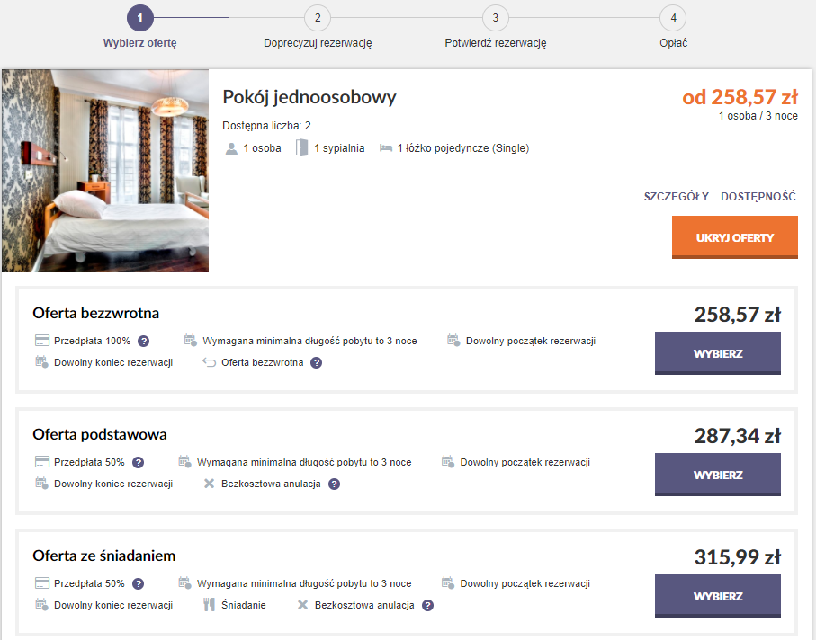 Od teraz ceny obowiązkowo płatnych dodatków oraz dostawek są prezentowane w pierwszym kroku składania rezerwacji w Booking Engine (przy wyborze oferty). Dodatki opcjonalne wciąż są możliwe do wyboru i doliczane w drugim kroku.