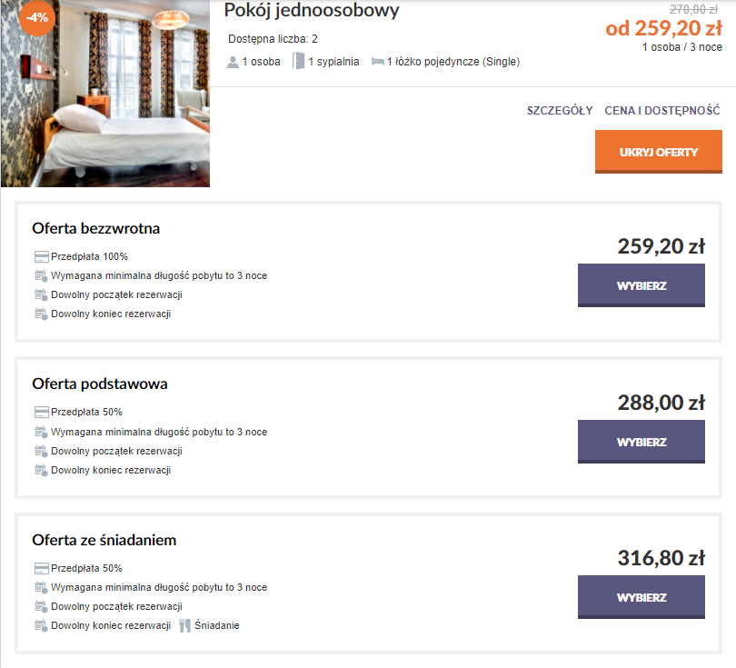 Od teraz masz niezliczone możliwości dostosowania oferty dla gości. Nie musisz już się ograniczać tylko do oferty zwrotnej i bezzwrotnej w jednym czasie. Możesz tworzyć różne warianty planów cenowych z planem wyżywienia obowiązujące w tym samym datach, uatrakcyjniając wybór dla gościa.